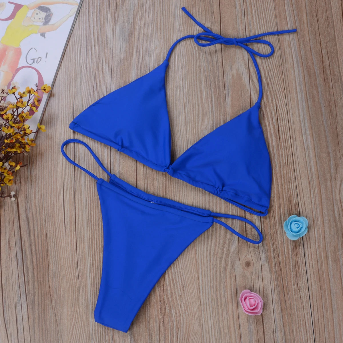 Yiiciovy 2022 Sexy Lace Up Thong Bikini Set Women Swimwear Bandage Push Up Padded Swimsuit Summer Beach Bathing Suit Brazilian
