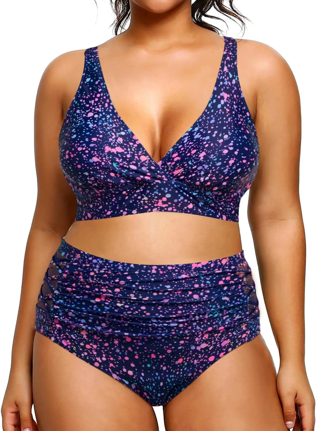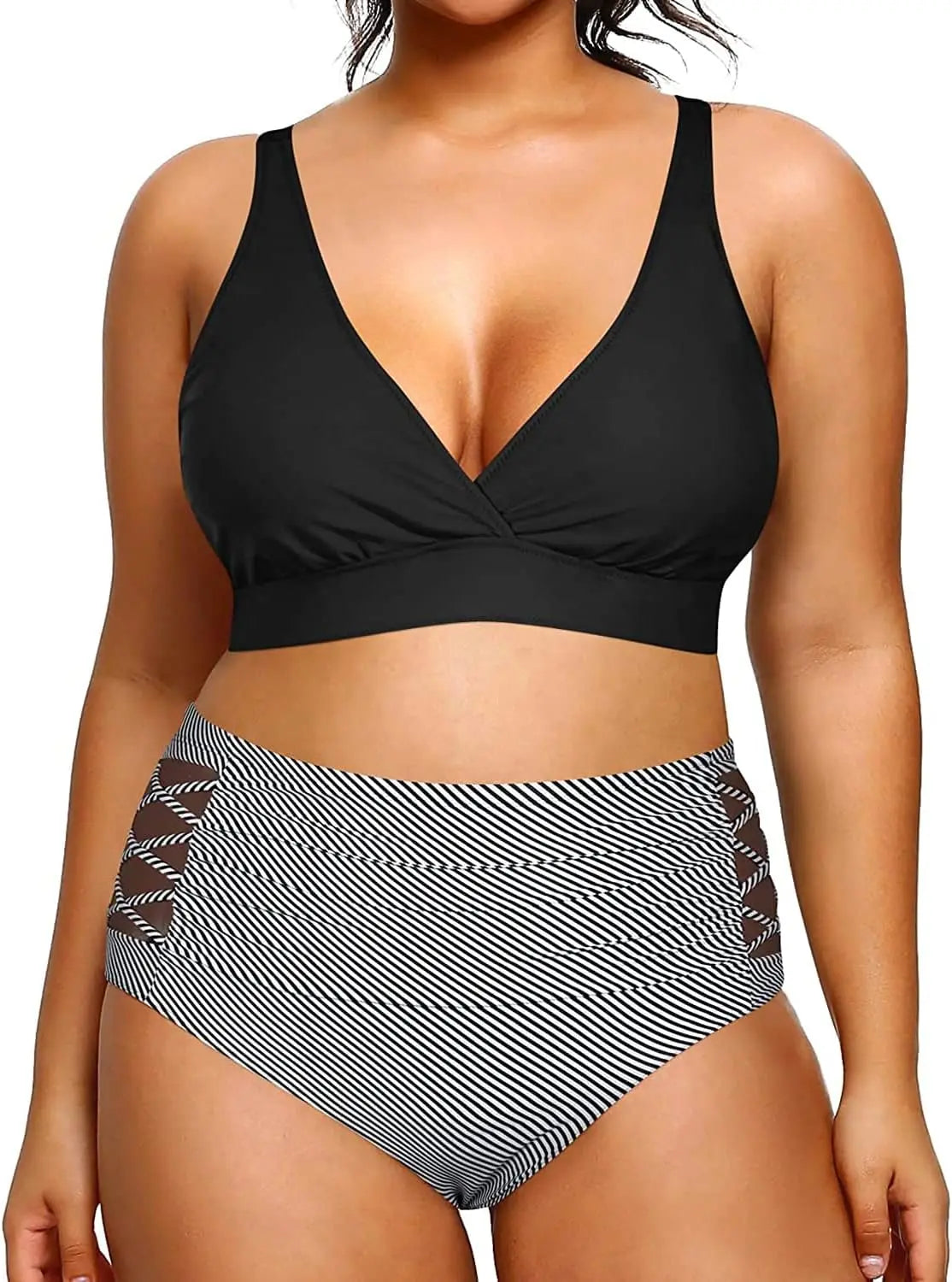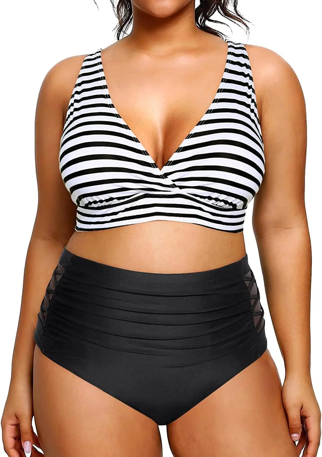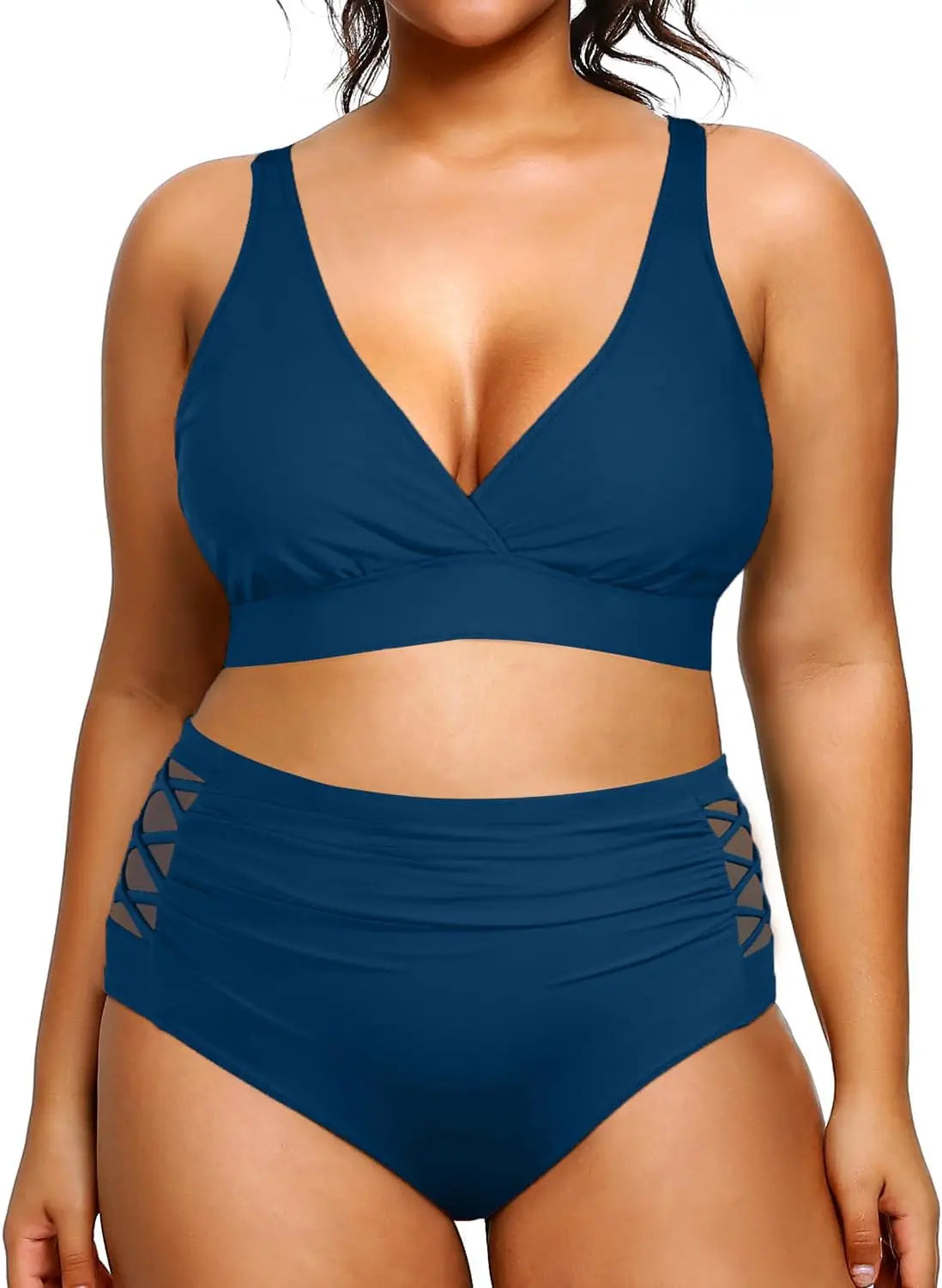 Yonique Womens Plus Size Bikini High Waisted Swimsuits Two Piece Bathing Suits Tummy Control Swimwear