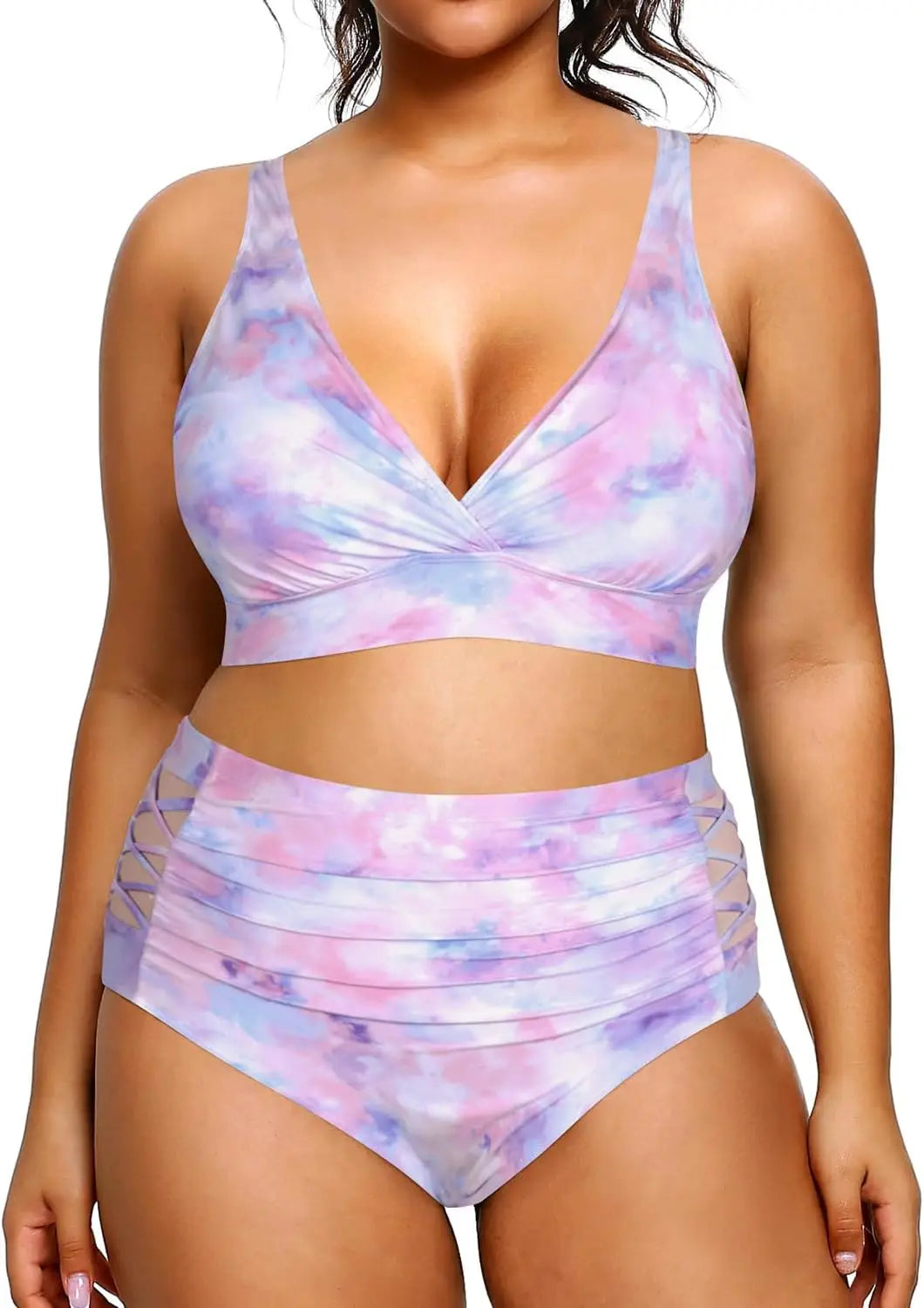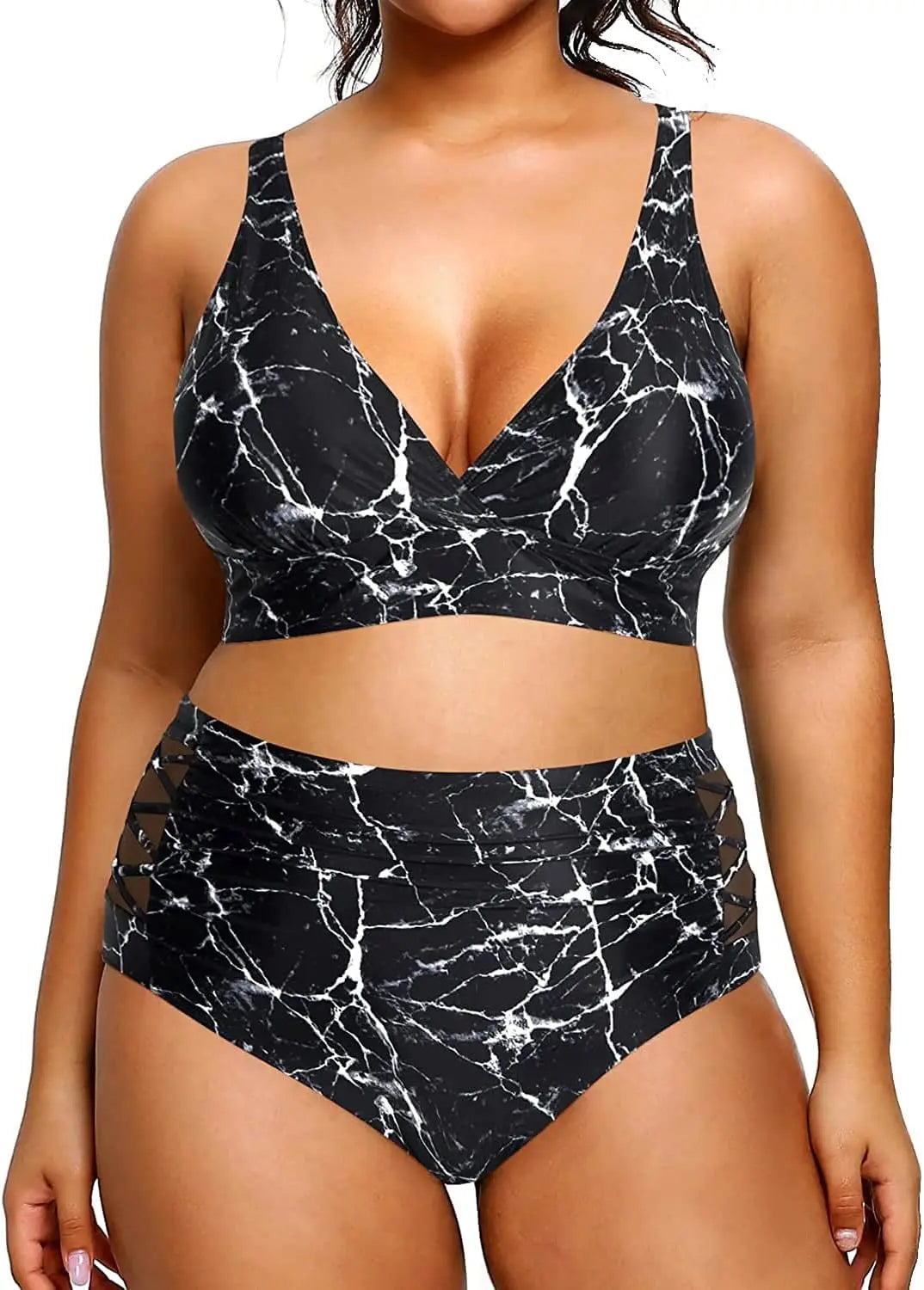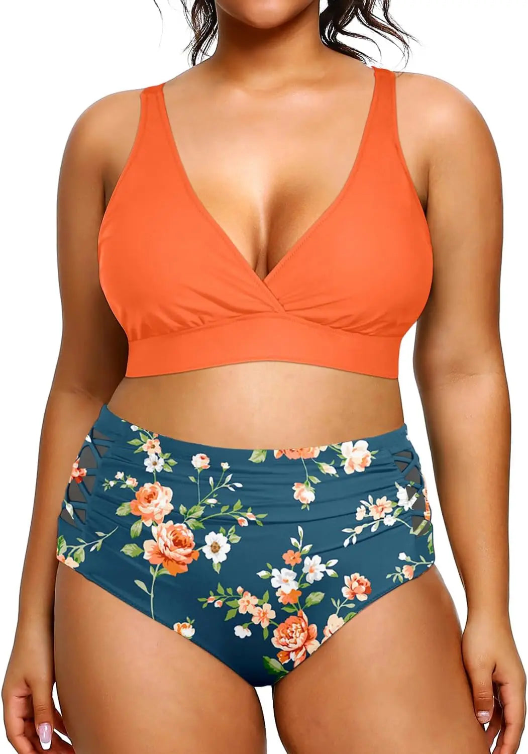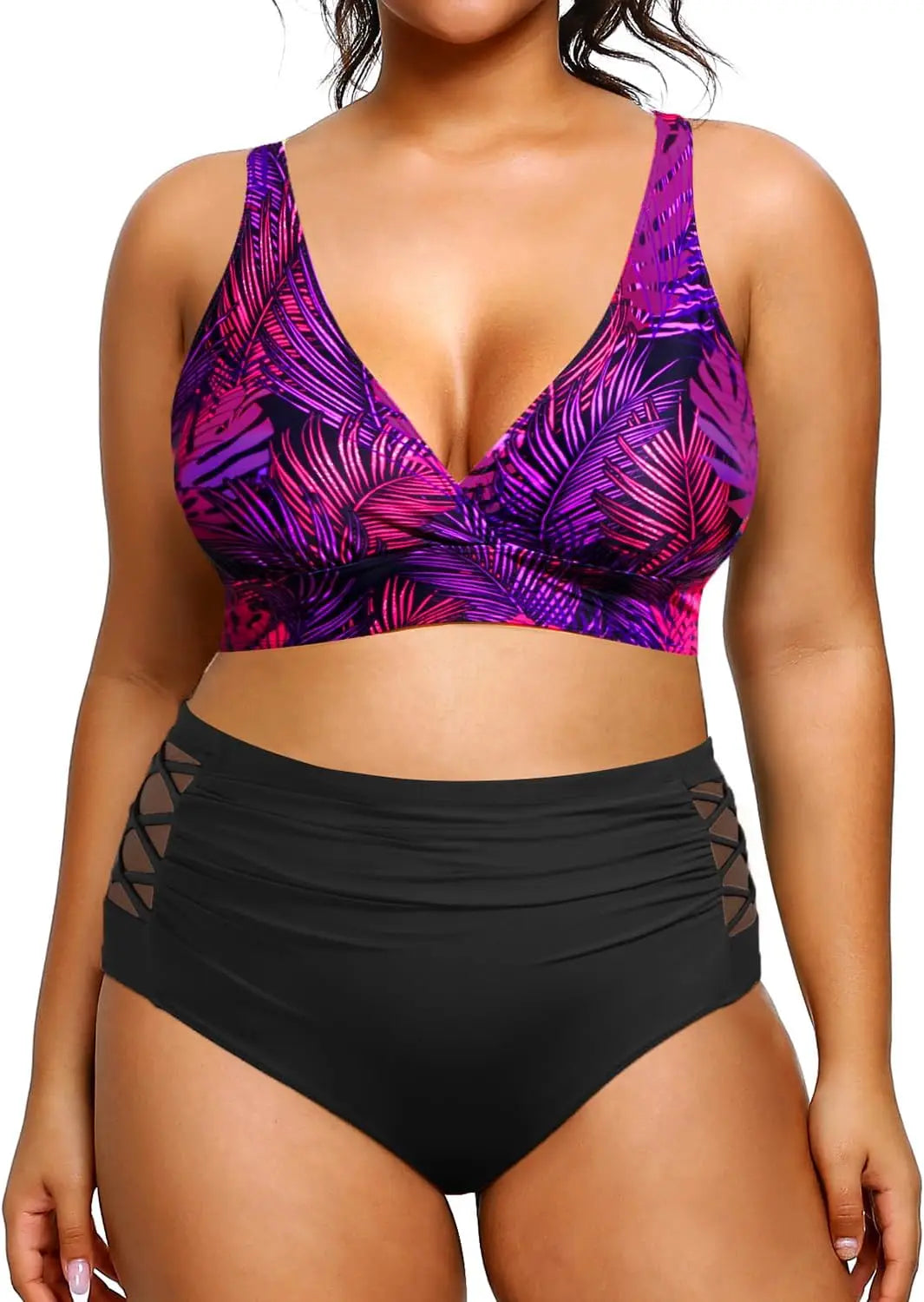 Yonique Womens Plus Size Bikini High Waisted Swimsuits Two Piece Bathing Suits Tummy Control Swimwear