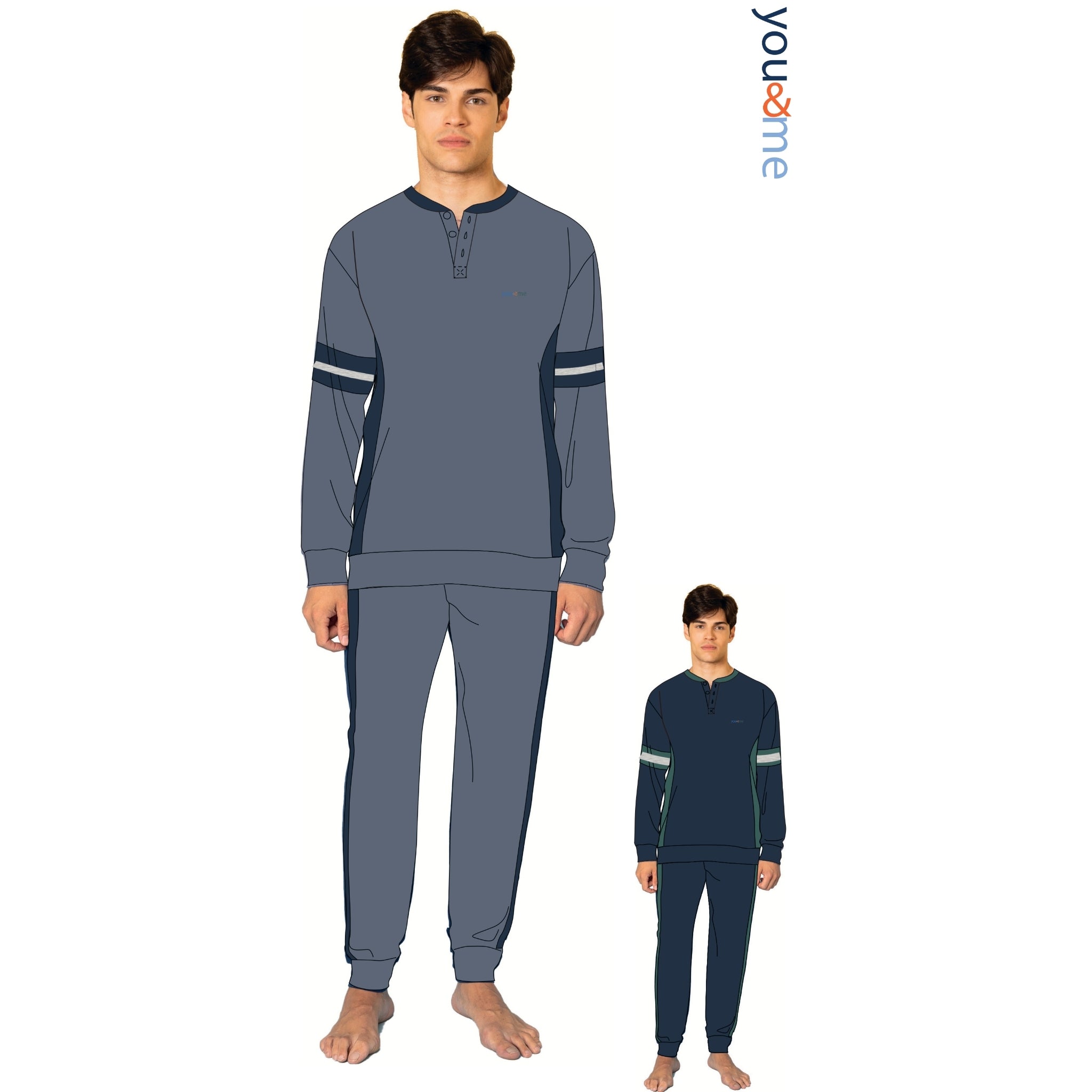 You & Me Inverno Pigiama Ragazzo Serafino 3 Bottoni Tinta Unita In Caldo Cotone Art. Bymi58