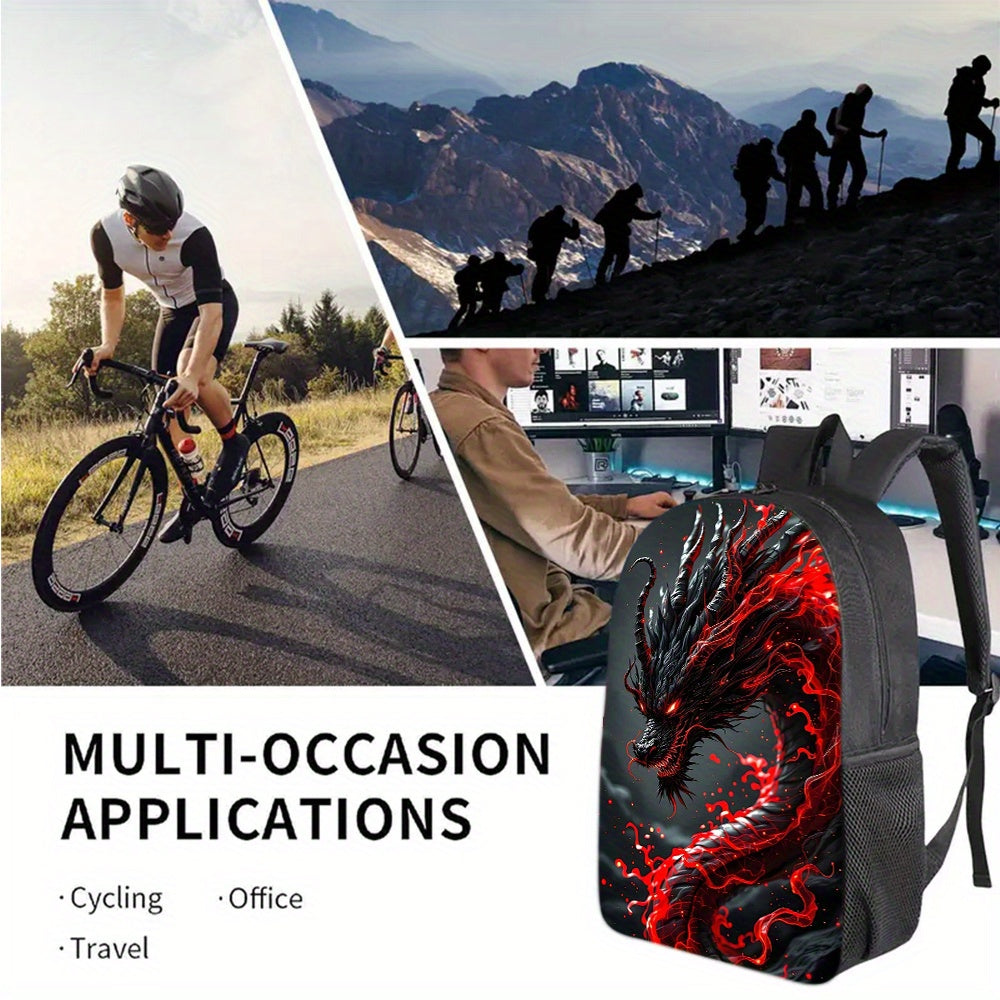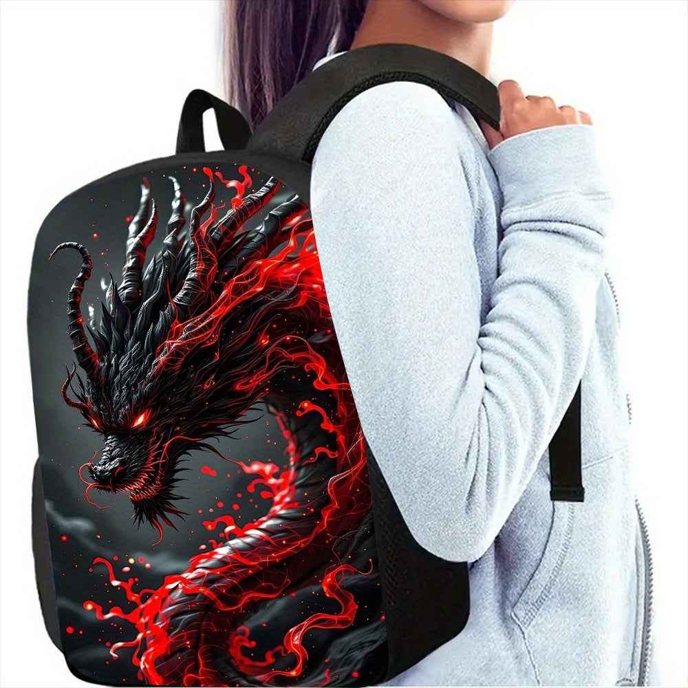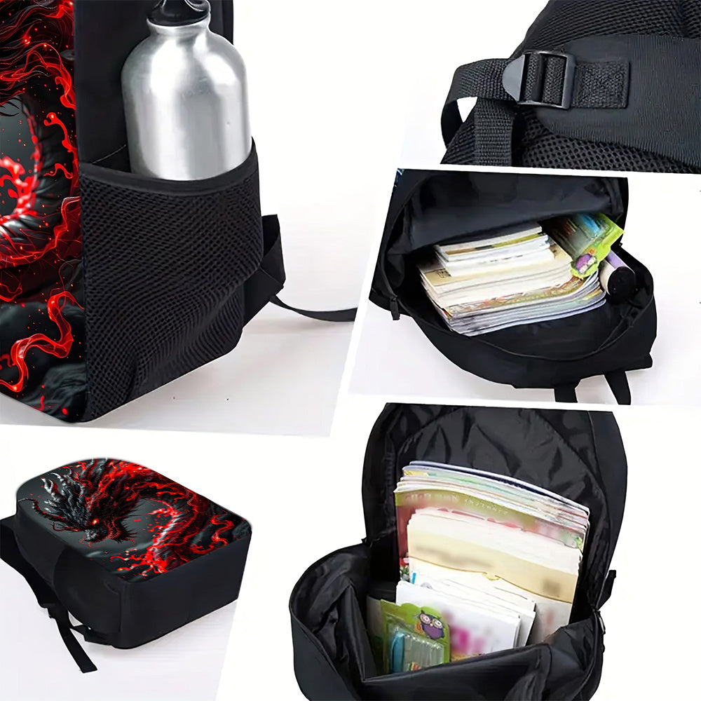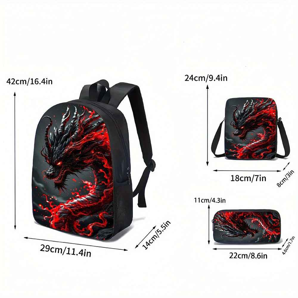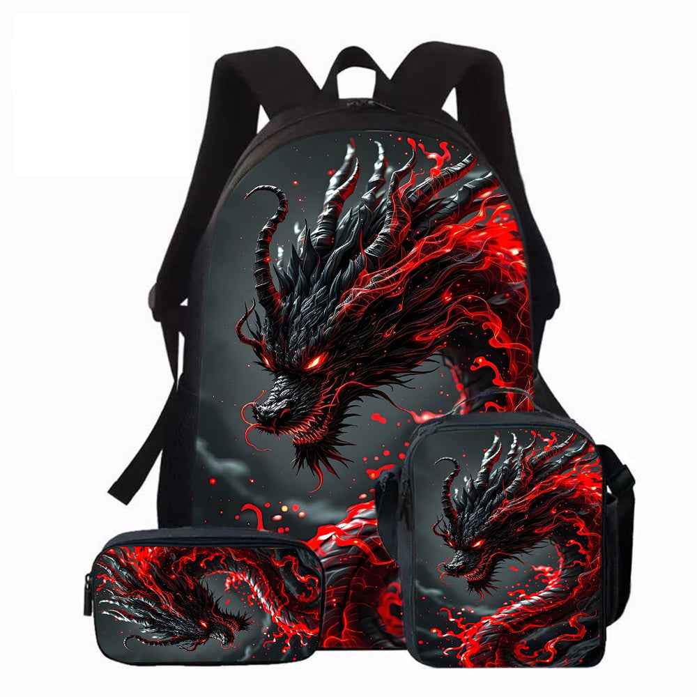 Zaino Testa di Drago Feroce 3 pezzi, inclusi portapranzo e astuccio per matite, adatto per la scuola quotidiana, l'arrampicata su roccia e sport all'aperto